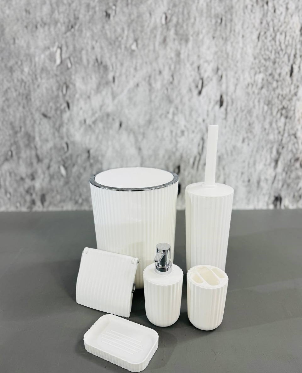 ست شش پارچه بادبزنی سفید زبرا همارا شامل : ♦️جادستمال کاغذی ،♦️جامسواک، ♦️جاصابون،♦️سطل و برس توالت،♦️جامایع 🔺️دارای کیفیتی مناسب و🔺️ قیمتی اقتصادی