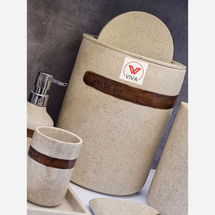 ست بهداشتی شش پارچه سنگی رزینیart شامل سطل با درب بادبزنی، توالت شور ،جامسواکی ،جامایع ،جاعودی از برند برتر ایران art