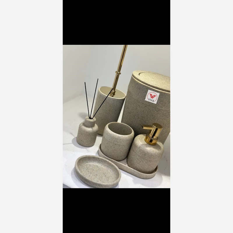 ست بهداشتی شش پارچه سنگی رزینیart شامل سطل با درب بادبزنی، توالت شور ،جامسواکی ،جامایع ،جاعودی از برند برتر ایران art