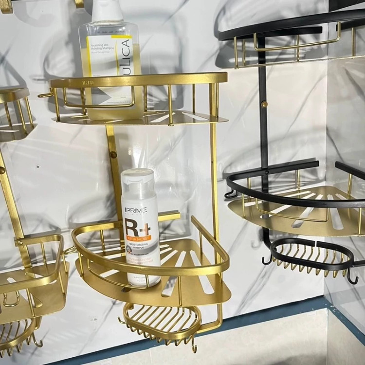 قفسه کنج حمام2طبقه آلومینیومی طلایی دنیز
