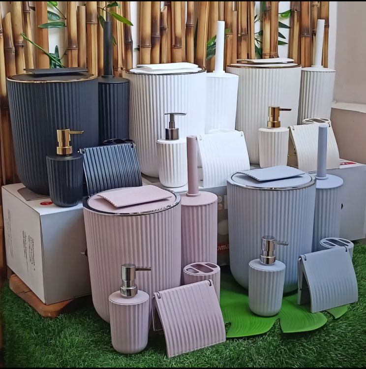 ست شش پارچه پدال دار زبرا همارا شامل : ♦️جادستمال کاغذی ،♦️جامسواک، ♦️جاصابون،♦️سطل و برس توالت،♦️جامایع 🔺️دارای کیفیتی مناسب و🔺️ قیمتی اقتصادی