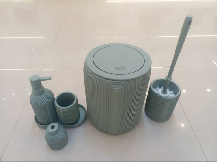 ست سرویس بهداشتی شش پارچه رزینی شامل سطل با درب بادبزنی، توالت شور ،جامسواکی ،جامایع ،جاعودی از برند برتر ایران art