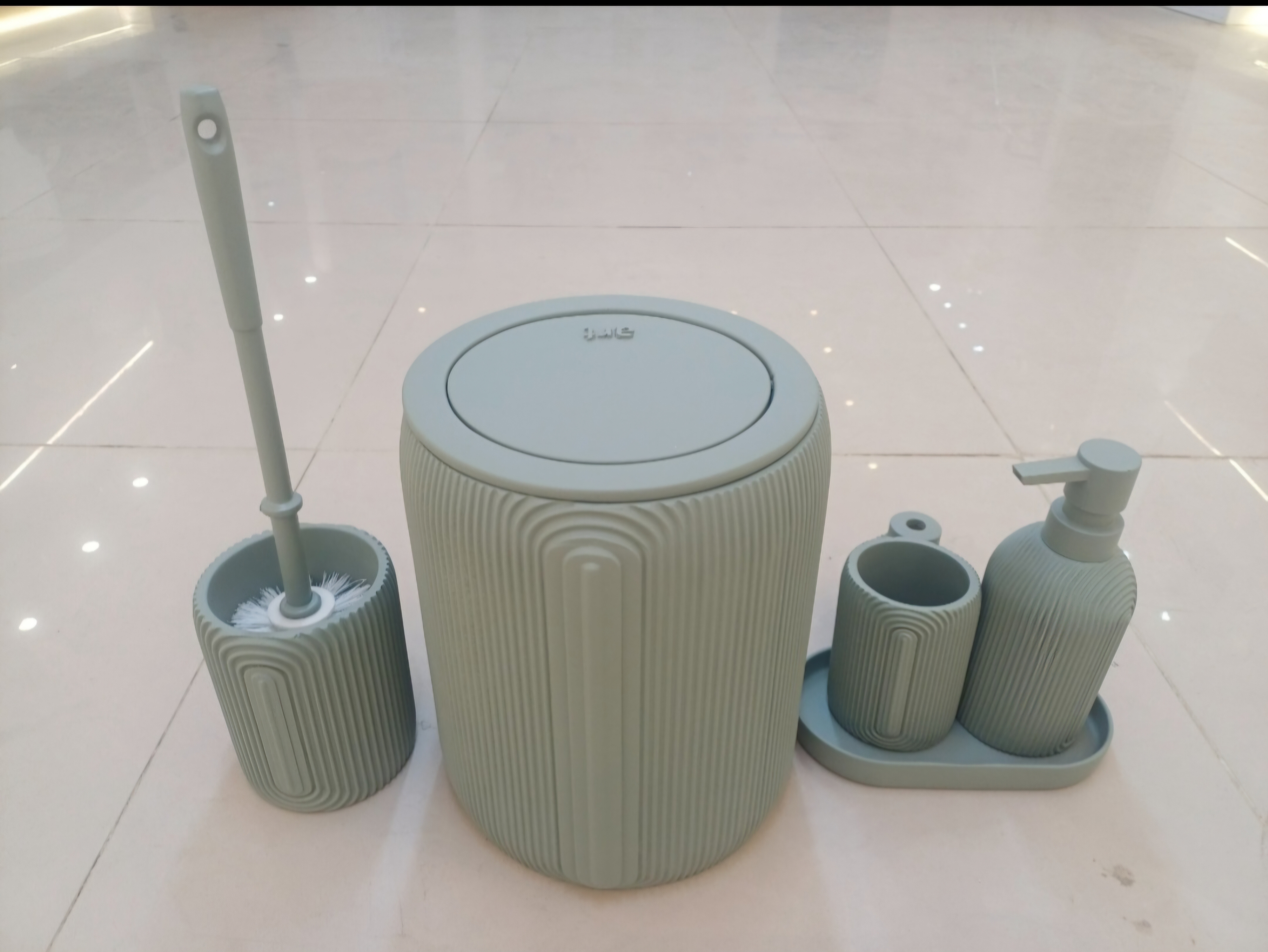 ست سرویس بهداشتی شش پارچه رزینی شامل سطل با درب بادبزنی، توالت شور ،جامسواکی ،جامایع ،جاعودی از برند برتر ایران art