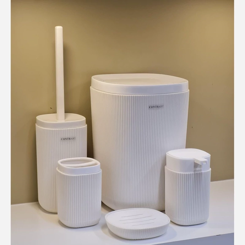 ♦️ست سرویس بهداشتی پنج پارچه روما خطی شیاردار برند کنتراست نو آکبند ♦️در رنگ بندی ♦️طوسی روشن ،طوسی تیره ،وانیلی،نسکافه ایی ،سفید ♦️ساخته شده از پلاستیک فشرده درجه یک آنتی باکتریال ♦️ارسال سریع به تمام نقاط کشور برای خریداران عزیز