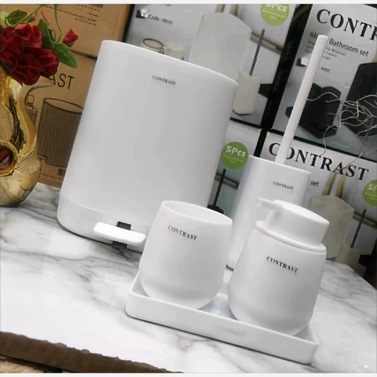 ست 5پارچه مدل 9900سفید مات برند کنتراست ✨️دارای قطعاتی شامل سطل پدالی ،برس توالت ،جاصابون ،جامایع ،جامسواک ✨️دارای برترین برند در رده های برندهای ایرانی ✨️دارای قیمتی پایین نسبت به برندهای خارجی ✨️دارای کیفیتی بالا و قیمتی پایین